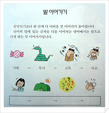 <Àç¹ÌÀÖ´Â ±¹¾î À̾߱â>Äڳʿ¡¼± À̾߱â ÀÕ±â, ´Ü¾î ÀÕ±â, À°ÇÏ¿øÄ¢´ë·Î ±Û¾²±â µî ´Ù¾çÇÑ ±¹¾î Ȱµ¿ÀÌ Á¦½ÃµÇ¾î ÀÖ¾î ³îÀÌó·³ ±¹¾î ½Ç·ÂÀ» Çâ»ó½Ãų ¼ö°¡ ÀÖ´ä´Ï´Ù.