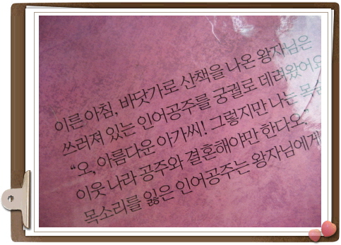 ÀÎ¾î°øÁÖ´Â ¿ÕÀÚÀÇ °ç¿¡ ÀÖ°í ½Í¾î¼ ÀÚ½ÅÀÇ ¸ñ¼Ò¸®¸¦ ¸¶³à¿¡°Ô ÁÖ´Â ´ë½Å »ç¶÷ÀÇ ¸öÀ» ¾ò¾î ¿Õ±Ã¿¡ µé¾î°¡¼ ½Ã³à°¡ µÈ´Ù. ±×·¯³ª ¿ÕÀÚ´Â º¡¾î¸®ÀÎ ÀÎ¾î°øÁÖ°¡ ÀÚ½ÅÀ» ±¸ÇØÁØ »ý¸íÀÇ ÀºÀÎÀ̶ó´Â »ç½ÇÀ» ¾ËÁö ¸øÇÑ Ã¤ ÀÌ¿ô ³ª¶óÀÇ °øÁÖ¿Í °áÈ¥ÇÏ°Ô µÇ°í, ³«½ÉÇÑ ÀÎ¾î°øÁÖ´Â ½½ÆÛÇÏ¸ç ¹Ù´å¼ÓÀ¸·Î ¸öÀ» ´øÁ® Á×°Ô µÈ´Ù.