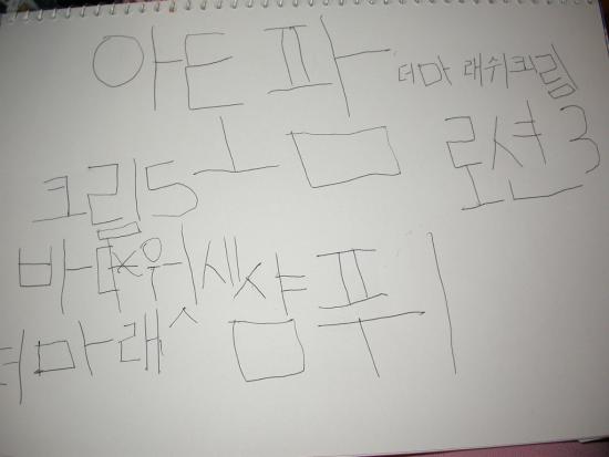 ÀÌÁ¨ '·Î¼Ç3''Å©¸²5''¼¤Çª1''¹Ùµð ¿ö½Ã 1'°¡Àå ¾î·Á¿î '´õ¸¶ ·¡½¬ Å©¸²'À» º¸´õ´Ï "¾ö¸¶°¡ ¿©±â ½áÁÖ¼¼¿ä" ¾ö¸¶°¡ '´õ'¸¦ ¾²´Ï ±ÙÀÌ´Â '¸¶'¸¦ ¾²°í ¾ö¸¶°¡. '·¡½¬'¸¦ ¾²´Ï. ±ÙÀÌ´Â 'Å©¸²'À» ¾²°í. 1°³¸¦ ¾²°í.